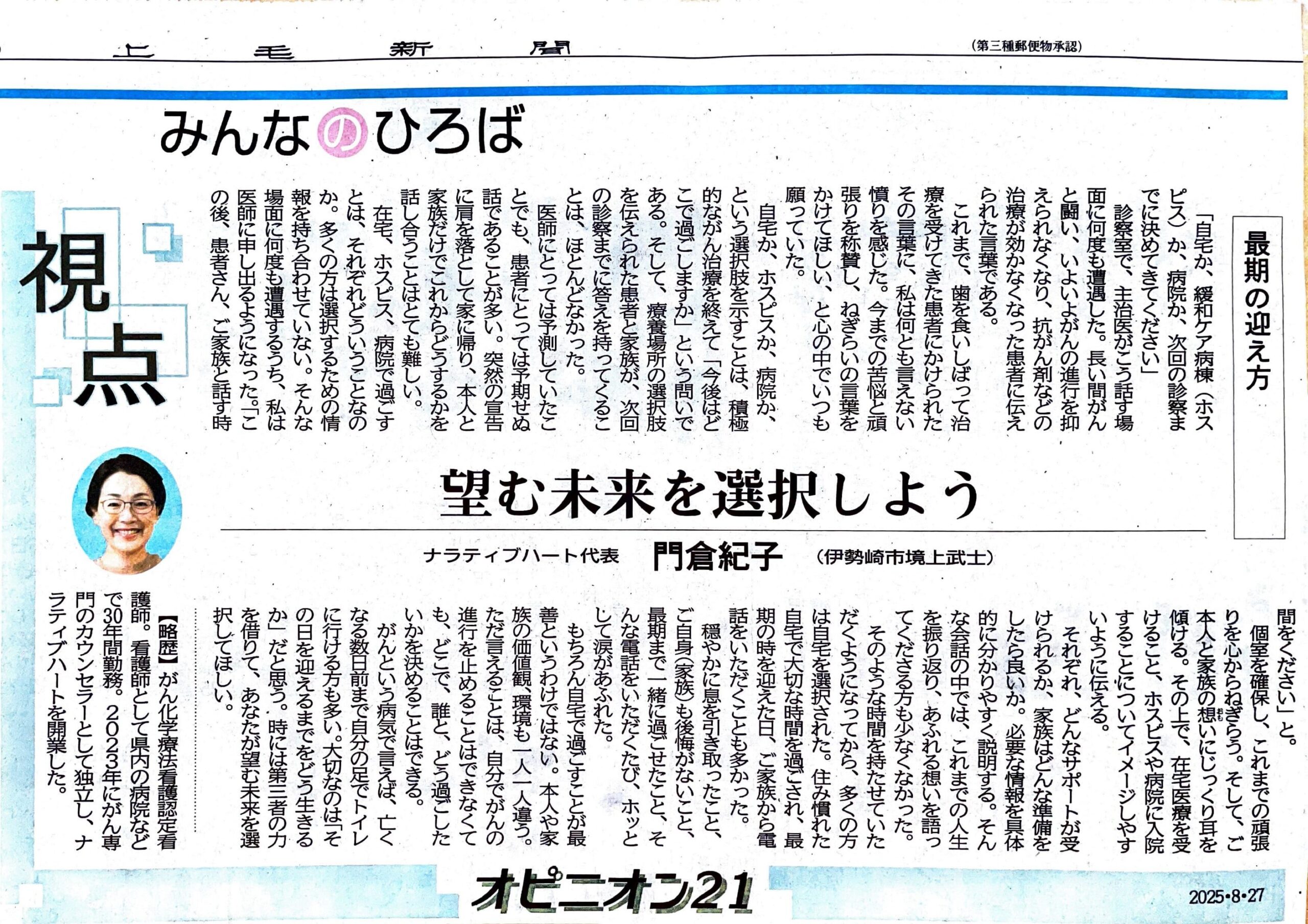 上毛新聞オピニオン21「望む未来を選択しよう」~最期の迎え方~